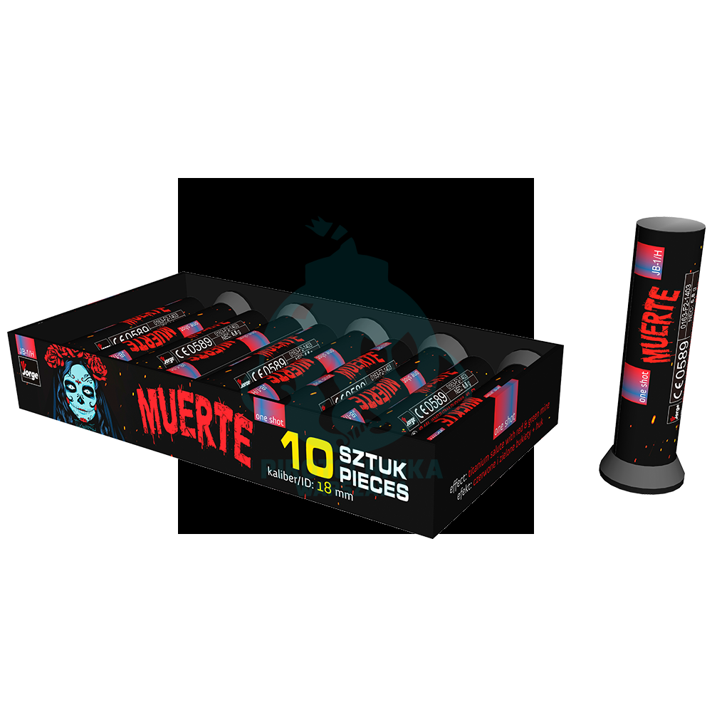 Kaliber 18 mm gwarantuje dobrą widoczność efektu przy zachowaniu kompaktowych rozmiarów, dzięki czemu JB-1/H MUERTE doskonale sprawdza się jako pojedynczy akcent pokazowy, element sekwencji lub efekt uzupełniający większe realizacje pirotechniczne. Produkt wyróżnia się wysoką jakością wykonania i powtarzalnością działania.
